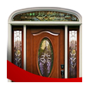 Дверные блоки с витражом или узорчатым стеклом станут изящным штрихом в экстерьере загородного коттеджа. На стеклянные вставки могут быть нанесены различные рисунки. Витражи для украшения дверей – настоящие произведения искусства.